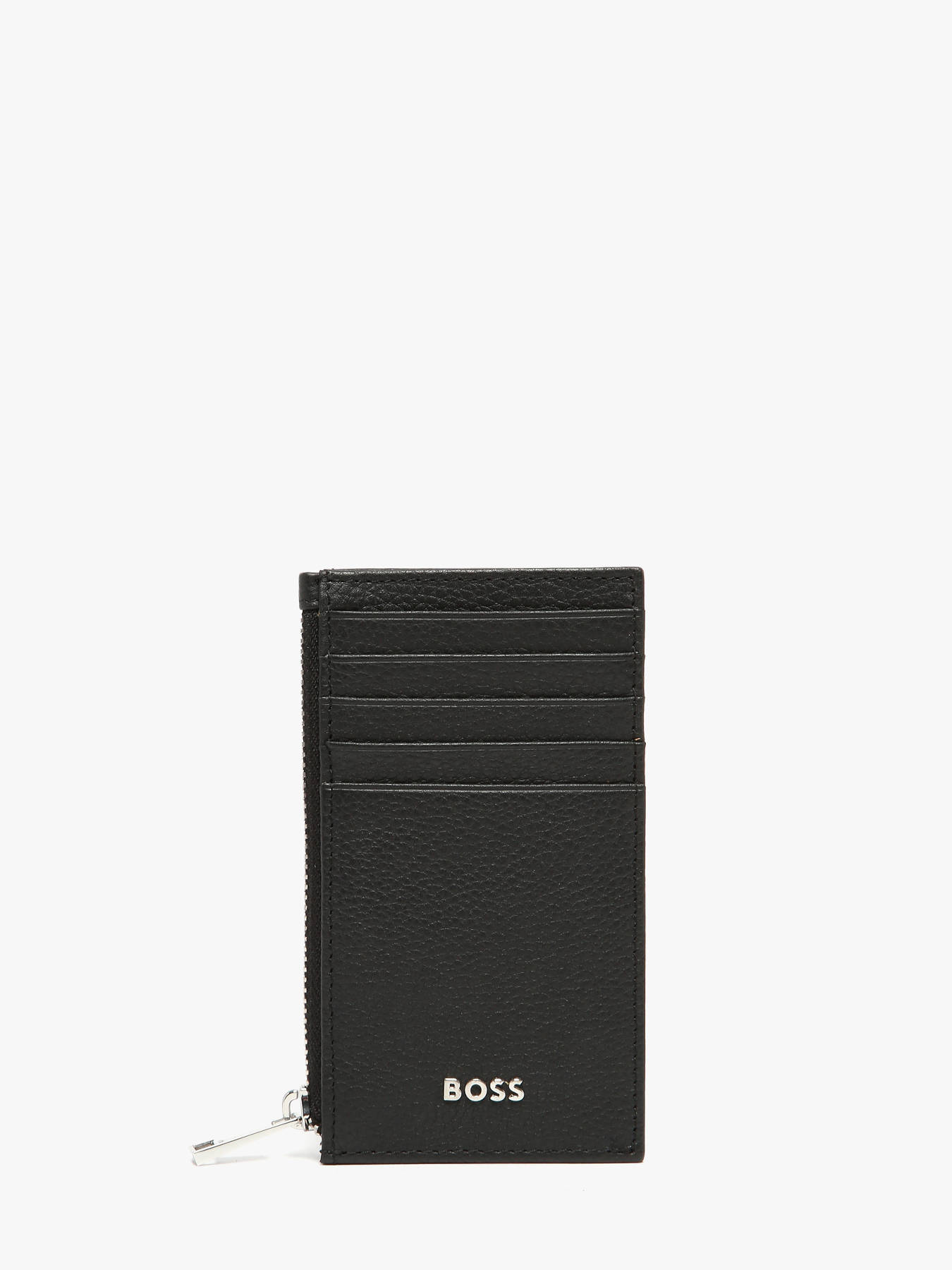 The Hugo Boss Grained card holder combines refined elegance with everyday practicality. Made from delicately grained cowhide leather, it offers a pleasant feel and long-lasting durability, developing a natural patina over time. Its thoughtful design includes a zippered main pocket to securely hold cash or small items, along with five front slots for quick access to essential cards. Compact and lightweight, it easily fits into a pocket or bag, making it perfect for daily use. Its clean and modern aesthetic reflects Hugo Boss’s signature style, making this card holder a functional yet chic accessory. An ideal choice for those who value premium leather goods that blend quality and style effortlessly.
