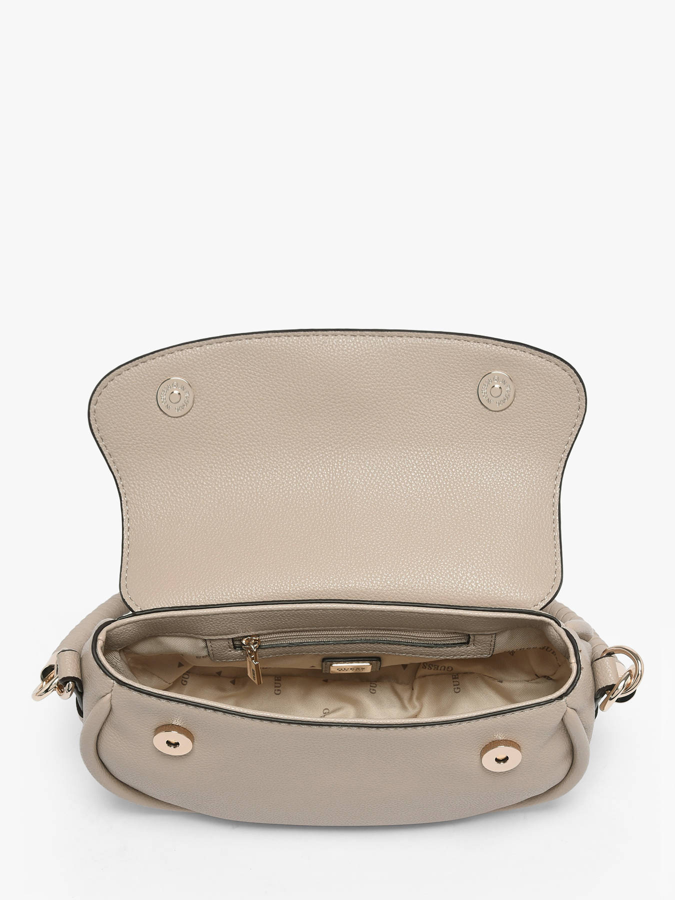 The DANYA GUESS crossbody bag in PU combines elegance, versatility, and practicality. Its flap with snap closure adds a modern touch while keeping your belongings secure. Inside, one main compartment, a zip pocket, and three card slots allow you to organize your essentials efficiently. The adjustable and detachable strap offers multiple carrying options: on the shoulder, crossbody, or by hand, adapting to any occasion or preference. With a 21 cm handle height, it can be carried comfortably while maintaining a chic, structured look. Compact and refined, this bag perfectly complements urban or more sophisticated outfits, adding a modern stylish touch to your wardrobe. Every detail reflects GUESS’s craftsmanship, making this bag a practical, elegant, and trendy accessory for everyday use.