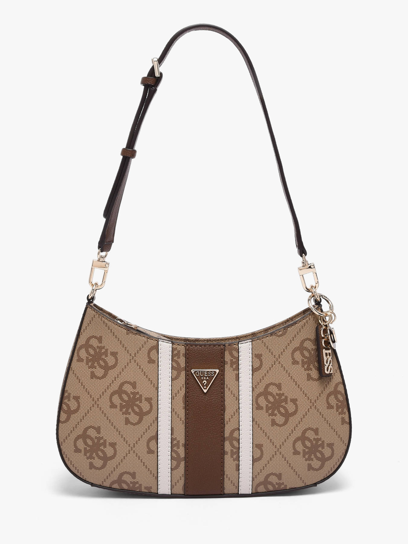 The NOELLE GUESS shoulder bag in PU combines modern elegance with everyday practicality. Its smooth, durable material ensures easy maintenance and long-lasting use. The zip closure keeps your belongings secure, while the back pocket provides quick access to essentials. Inside, one main compartment, a zip pocket, and three card slots offer organized storage for your must-haves. With a 32 cm handle height, it can be comfortably worn on the shoulder, combining style and comfort. Compact and structured, this bag suits any occasion, from urban daily wear to a more refined outfit. Every detail, from the refined finishes to the quality materials, reflects GUESS’s craftsmanship, making NOELLE a chic, functional, and modern accessory—perfect for those seeking elegance and organization every day.
