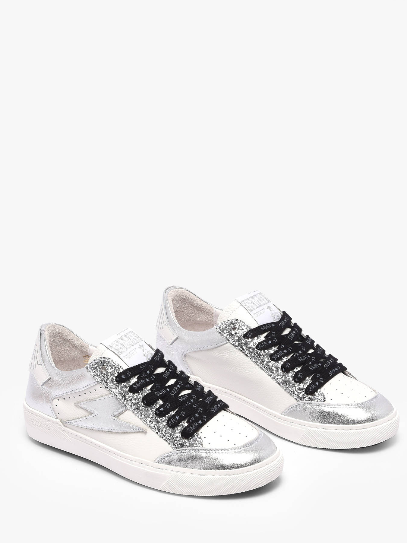 Les baskets Noubar de Semerdjian allient modernité, luminosité et style urbain pour un look chic au quotidien. Leur base en cuir blanc de qualité assure confort et durabilité, tandis que les nombreux détails en cuir métallisé argent apportent éclat et caractère à chaque pas. Les lacets noirs avec inscriptions SMR 23 ajoutent une touche distinctive et contemporaine qui fait ressortir l’identité unique de ce modèle. Polyvalentes et stylées, ces sneakers se portent facilement en ville ou lors de vos sorties, offrant confort, maintien et un design raffiné qui attire les regards. Les Noubar incarnent parfaitement l’alliance entre modernité et sophistication Semerdjian.